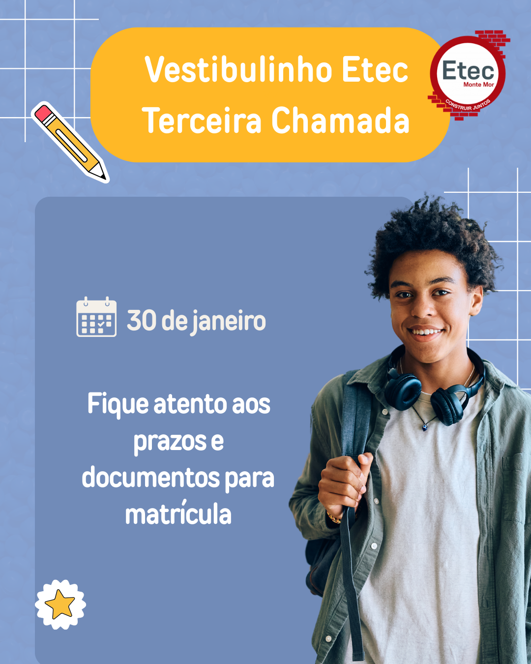 Chegou a hora de garantir a sua vaga na Etec de Monte Mor 🎓✨Se você foi convocado na 3ª chamada, fique muito atento às informações abaixo ⬇️ 📌 MATRÍCULAS🗓 Apenas em 02 de...