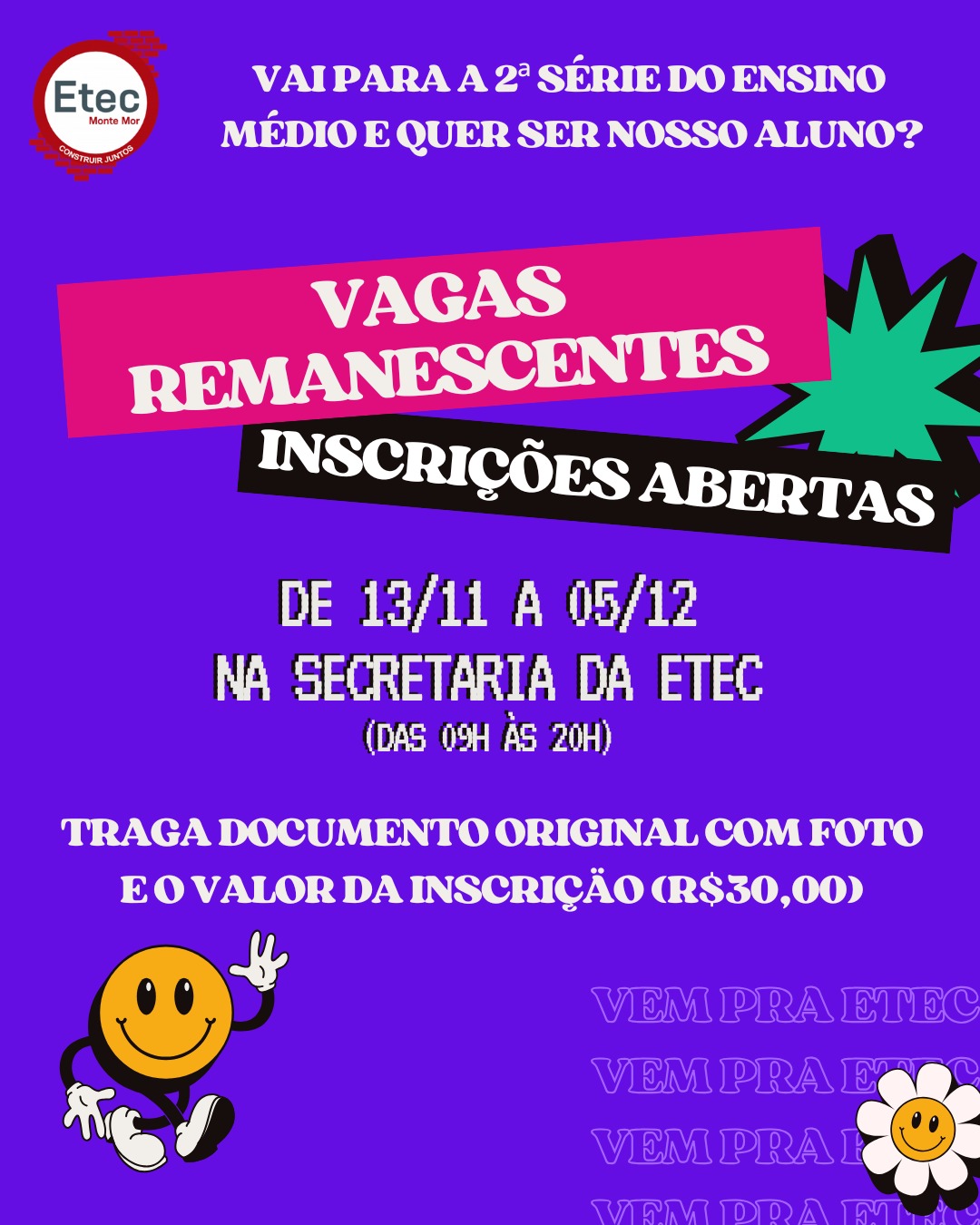 📅 Inscrições até 05/12 na Secretaria da Etec de Monte Mor.