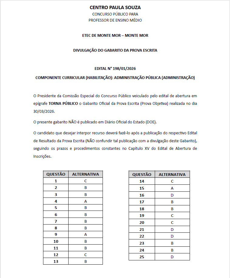 COMPONENTE CURRICULAR (HABILITAÇÃO): ADMINISTRAÇÃO PÚBLICA (ADMINISTRAÇÃO)
